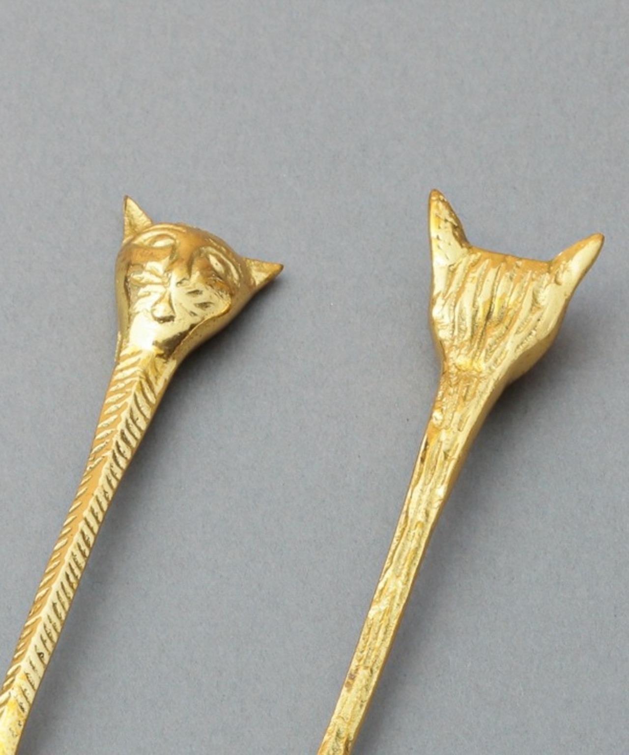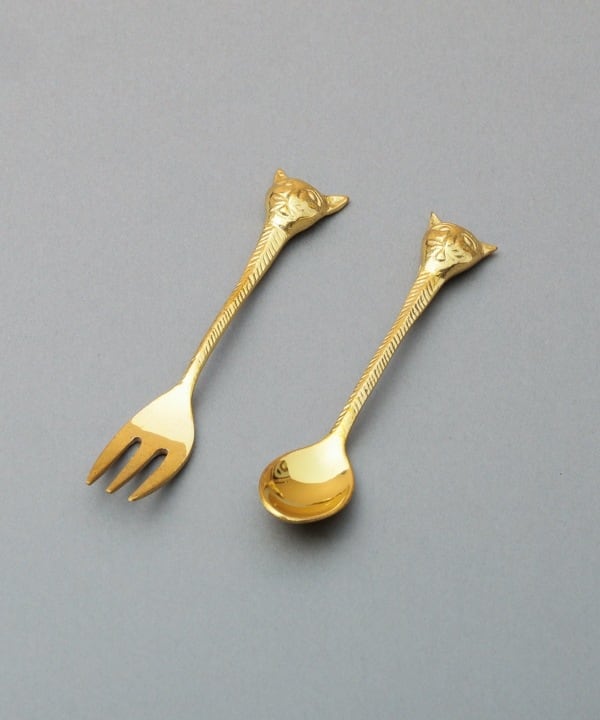 ちょっとフルーツを食べる時や、アイスクリーム・プリンなどをデザートで食べる時に、ウキウキワクワクするモノを使うと、その時間が更に贅沢に感じるなあと思い、アンティークな風合いと、1つ1つの猫ちゃんの表情がとても可愛いフォークとスプーンをセレクトしました。
