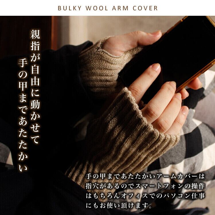 ベージュがお洒落なバルキーウールのふわふわアームウォーマー 冬小物 冷え対策 シルク アームカバー クリスマス